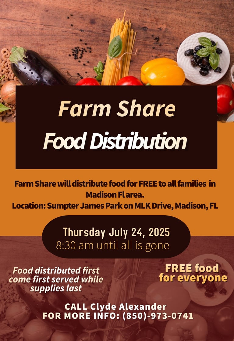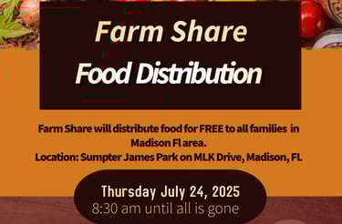 We are located in Northern Florida, dedicated to helping the community through food distribution and support for those in need.